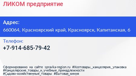 ЛИКОМ, предприятие по адресу 660064, Красноярский край, Красноярск, Капитанская, 6 в дальнейшем Организация, размещена в следующих категориях: