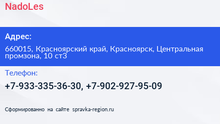 NadoLes по адресу 660015, Красноярский край, Красноярск, Центральная промзона, 10 ст3 в дальнейшем Организация, размещена в следующих категориях: