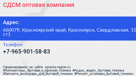 СДСМ, оптовая компания по адресу 660079, Красноярский край, Красноярск, Свердловская, 15 ст1 в дальнейшем Организация, размещена в следующих категориях: