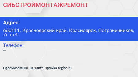 СИБСТРОЙМОНТАЖРЕМОНТ по адресу 660111, Красноярский край, Красноярск, Пограничников, 7г ст4 в дальнейшем Организация, размещена в следующих категориях: