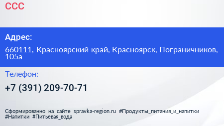 ССС по адресу 660111, Красноярский край, Красноярск, Пограничников, 105а в дальнейшем Организация, размещена в следующих категориях: