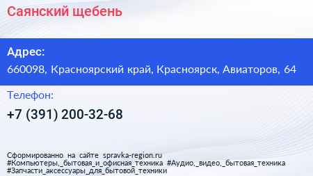 Саянский щебень по адресу 660098, Красноярский край, Красноярск, Авиаторов, 64 в дальнейшем Организация, размещена в следующих категориях: