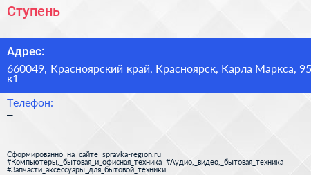 Ступень по адресу 660049, Красноярский край, Красноярск, Карла Маркса, 95 к1 в дальнейшем Организация, размещена в следующих категориях: