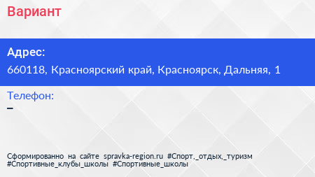 Вариант по адресу 660118, Красноярский край, Красноярск, Дальняя, 1 в дальнейшем Организация, размещена в следующих категориях: