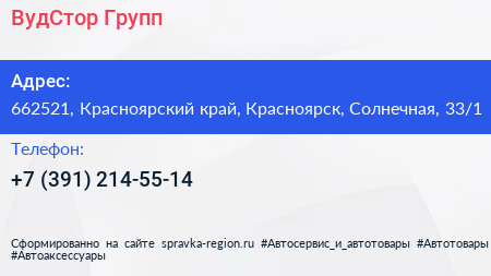 ВудСтор Групп по адресу 662521, Красноярский край, Красноярск, Солнечная, 33/1 в дальнейшем Организация, размещена в следующих категориях: