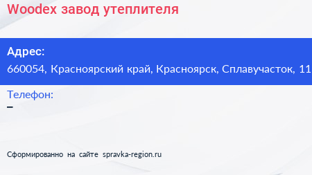 Woodex, завод утеплителя по адресу 660054, Красноярский край, Красноярск, Сплавучасток, 11 в дальнейшем Организация, размещена в следующих категориях: