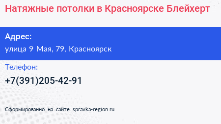 Натяжные потолки в Красноярске - "Блейхерт" по адресу улица 9 Мая, 79, Красноярск в дальнейшем Организация, размещена в следующих категориях: