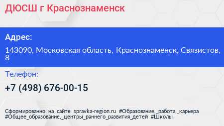 ДЮСШ, г. Краснознаменск по адресу 143090, Московская область, Краснознаменск, Связистов, 8 в дальнейшем Организация, размещена в следующих категориях: