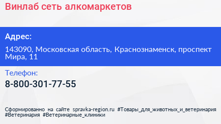 Винлаб, сеть алкомаркетов по адресу 143090, Московская область, Краснознаменск, проспект Мира, 11 в дальнейшем Организация, размещена в следующих категориях: