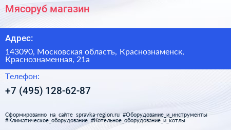 Мясоруб, магазин по адресу 143090, Московская область, Краснознаменск, Краснознаменная, 21а в дальнейшем Организация, размещена в следующих категориях: