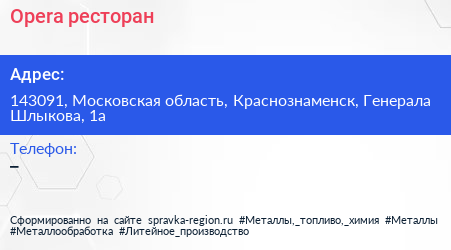 Opera, ресторан по адресу 143091, Московская область, Краснознаменск, Генерала Шлыкова, 1а в дальнейшем Организация, размещена в следующих категориях: