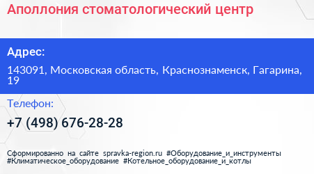 Аполлония, стоматологический центр по адресу 143091, Московская область, Краснознаменск, Гагарина, 19 в дальнейшем Организация, размещена в следующих категориях: