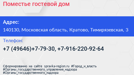 Поместье, гостевой дом по адресу 140130, Московская область, Кратово, Тимирязевская, 3 в дальнейшем Организация, размещена в следующих категориях: