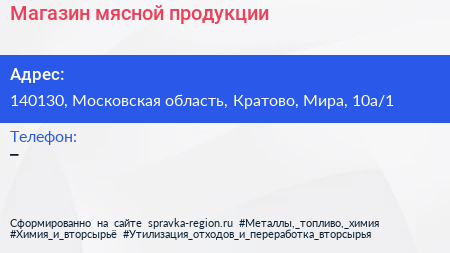 Магазин мясной продукции по адресу 140130, Московская область, Кратово, Мира, 10а/1 в дальнейшем Организация, размещена в следующих категориях: