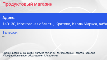 Продуктовый магазин по адресу 140130, Московская область, Кратово, Карла Маркса, вл9а в дальнейшем Организация, размещена в следующих категориях: