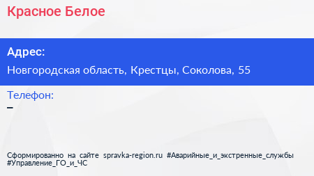 Красное & Белое по адресу Новгородская область, Крестцы, Соколова, 55 в дальнейшем Организация, размещена в следующих категориях: