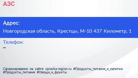 АЗС по адресу Новгородская область, Крестцы, М-10 437 Километр, 1 в дальнейшем Организация, размещена в следующих категориях: