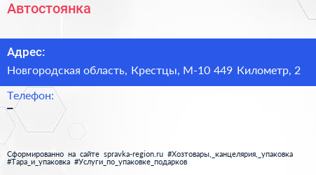 Автостоянка по адресу Новгородская область, Крестцы, М-10 449 Километр, 2 в дальнейшем Организация, размещена в следующих категориях: