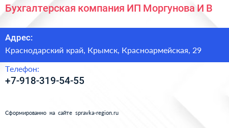 Бухгалтерская компания, ИП Моргунова И.В. по адресу Краснодарский край, Крымск, Красноармейская, 29 в дальнейшем Организация, размещена в следующих категориях: