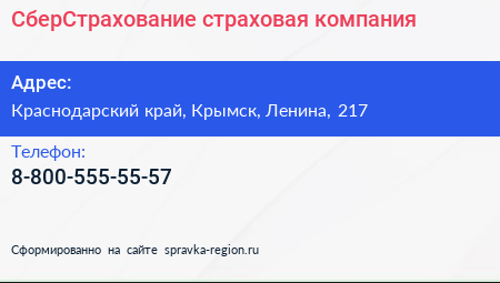 СберСтрахование, страховая компания по адресу Краснодарский край, Крымск, Ленина, 217 в дальнейшем Организация, размещена в следующих категориях: