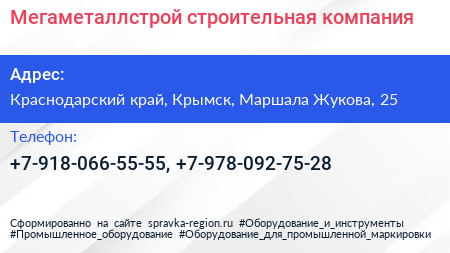 Мегаметаллстрой, строительная компания по адресу Краснодарский край, Крымск, Маршала Жукова, 25 в дальнейшем Организация, размещена в следующих категориях: