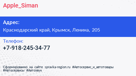 Apple_Siman по адресу Краснодарский край, Крымск, Ленина, 205 в дальнейшем Организация, размещена в следующих категориях: