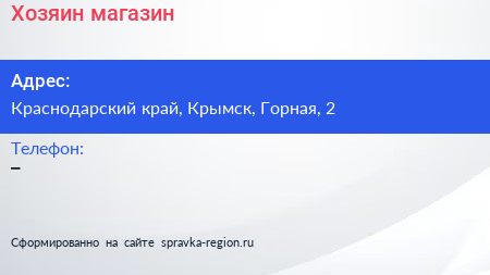 Хозяин, магазин по адресу Краснодарский край, Крымск, Горная, 2 в дальнейшем Организация, размещена в следующих категориях: