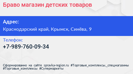 Браво, магазин детских товаров по адресу Краснодарский край, Крымск, Синёва, 9 в дальнейшем Организация, размещена в следующих категориях: