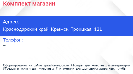 Комплект, магазин по адресу Краснодарский край, Крымск, Троицкая, 121 в дальнейшем Организация, размещена в следующих категориях: