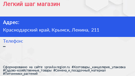 Легкий шаг, магазин по адресу Краснодарский край, Крымск, Ленина, 211 в дальнейшем Организация, размещена в следующих категориях: