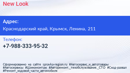 New Look по адресу Краснодарский край, Крымск, Ленина, 211 в дальнейшем Организация, размещена в следующих категориях: