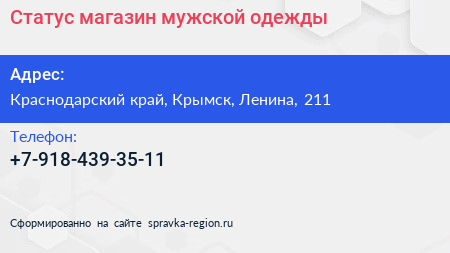 Статус, магазин мужской одежды по адресу Краснодарский край, Крымск, Ленина, 211 в дальнейшем Организация, размещена в следующих категориях: