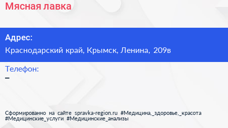 Мясная лавка по адресу Краснодарский край, Крымск, Ленина, 209в в дальнейшем Организация, размещена в следующих категориях: