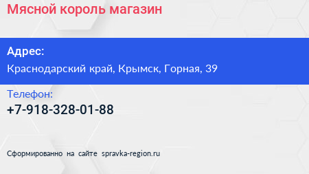 Мясной король, магазин по адресу Краснодарский край, Крымск, Горная, 39 в дальнейшем Организация, размещена в следующих категориях: