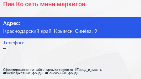 Пив & Ко, сеть мини-маркетов по адресу Краснодарский край, Крымск, Синёва, 9 в дальнейшем Организация, размещена в следующих категориях: