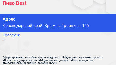 Пиво Best по адресу Краснодарский край, Крымск, Троицкая, 145 в дальнейшем Организация, размещена в следующих категориях: