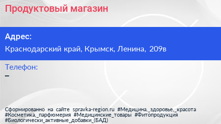 Продуктовый магазин по адресу Краснодарский край, Крымск, Ленина, 209в в дальнейшем Организация, размещена в следующих категориях: