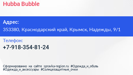 Hubba Bubble по адресу 353380, Краснодарский край, Крымск, Надежды, 9/1 в дальнейшем Организация, размещена в следующих категориях:
