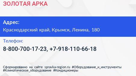 ЗОЛОТАЯ АРКА по адресу Краснодарский край, Крымск, Ленина, 180 в дальнейшем Организация, размещена в следующих категориях: