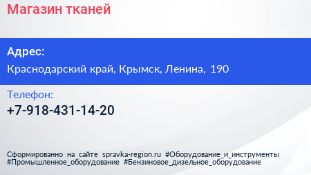 Магазин тканей по адресу Краснодарский край, Крымск, Ленина, 190 в дальнейшем Организация, размещена в следующих категориях: