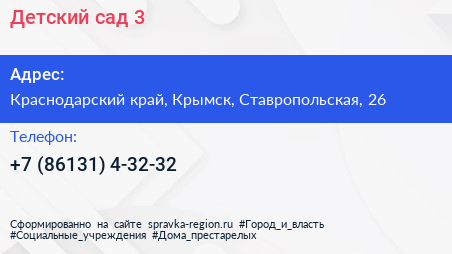 Детский сад №3 по адресу Краснодарский край, Крымск, Ставропольская, 26 в дальнейшем Организация, размещена в следующих категориях: