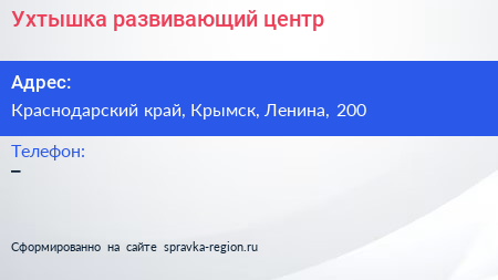 Ухтышка, развивающий центр по адресу Краснодарский край, Крымск, Ленина, 200 в дальнейшем Организация, размещена в следующих категориях:
