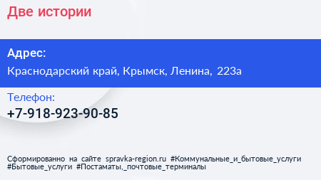 Две истории по адресу Краснодарский край, Крымск, Ленина, 223а в дальнейшем Организация, размещена в следующих категориях: