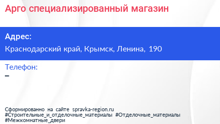 Арго, специализированный магазин по адресу Краснодарский край, Крымск, Ленина, 190 в дальнейшем Организация, размещена в следующих категориях: