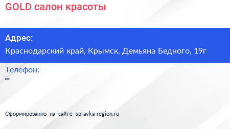 GOLD, салон красоты по адресу Краснодарский край, Крымск, Демьяна Бедного, 19г в дальнейшем Организация, размещена в следующих категориях:
