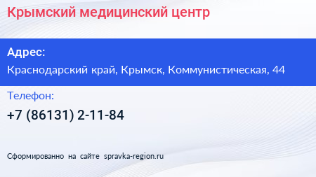 Крымский медицинский центр по адресу Краснодарский край, Крымск, Коммунистическая, 44 в дальнейшем Организация, размещена в следующих категориях: