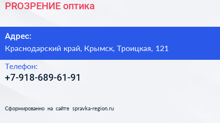 PROЗРЕНИЕ, оптика по адресу Краснодарский край, Крымск, Троицкая, 121 в дальнейшем Организация, размещена в следующих категориях:
