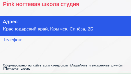 Pink, ногтевая школа-студия по адресу Краснодарский край, Крымск, Синёва, 2Б в дальнейшем Организация, размещена в следующих категориях: