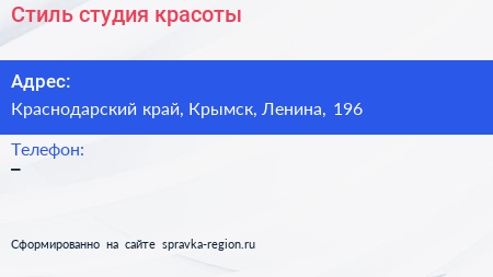 Стиль, студия красоты по адресу Краснодарский край, Крымск, Ленина, 196 в дальнейшем Организация, размещена в следующих категориях: