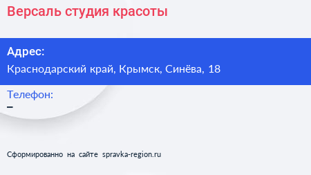 Версаль, студия красоты по адресу Краснодарский край, Крымск, Синёва, 18 в дальнейшем Организация, размещена в следующих категориях: